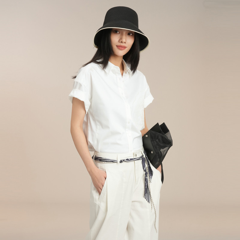 衬衣XK221009A551 通勤短袖 XG雪歌简约气质翻领白衬衫 女2025夏新款