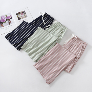 女春秋薄款 休闲垂感家居裤 长裤 竖条纹宽松大码 夏季 日系莫代尔睡裤
