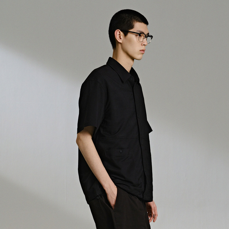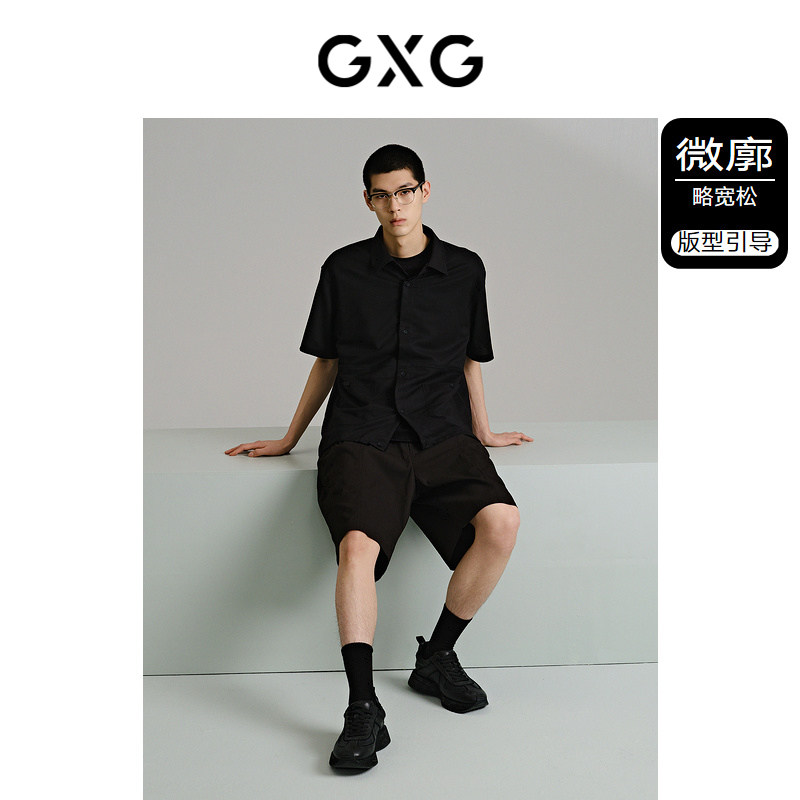 24年夏新品 GXG男装 衬衫 黑色肌理休闲短袖 G24X232004 商场同款