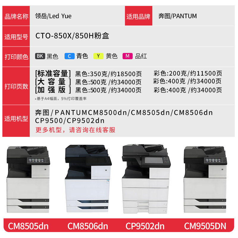 CM8500DN 适用奔图CM8505DN粉盒CTO CP9500DN CMY墨盒CM9505dn CM8506DN复印机墨粉盒CP9502DN碳粉盒 850XK