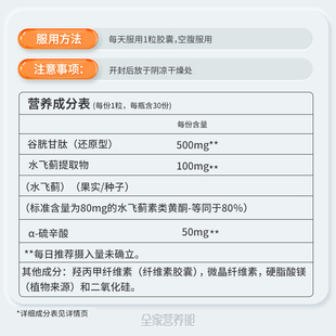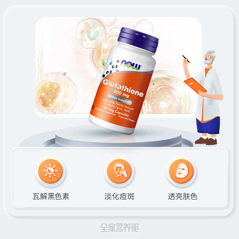 诺奥谷胱甘肽还原型硫辛酸口服亮肤高含量500mg2瓶 NOW 自营