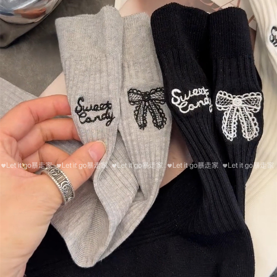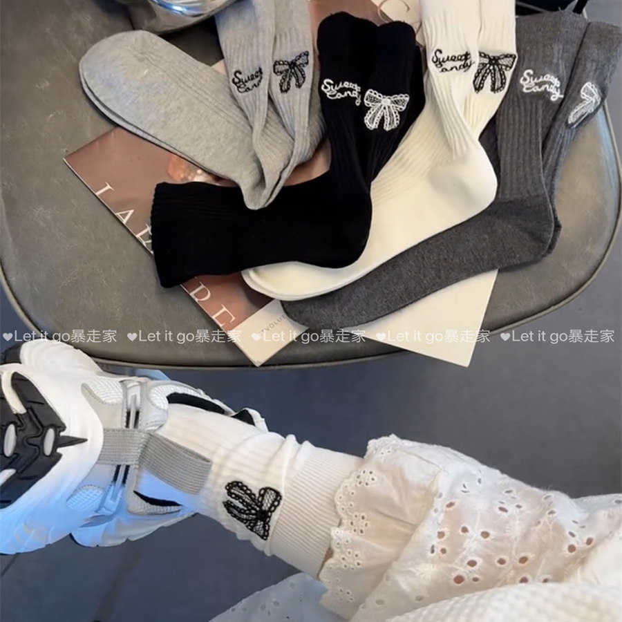 5双袜子男女纯棉防臭中筒袜情侣刺绣学生百搭ins高帮运动长筒袜潮