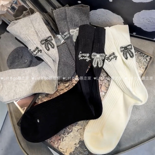 韩版 防臭吸汗休闲竖条纹堆堆月子袜纯糖果色 女士中筒长袜子春秋款