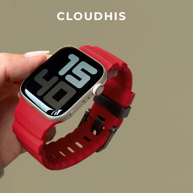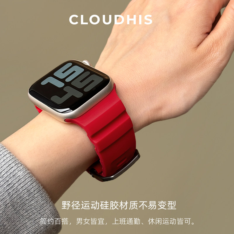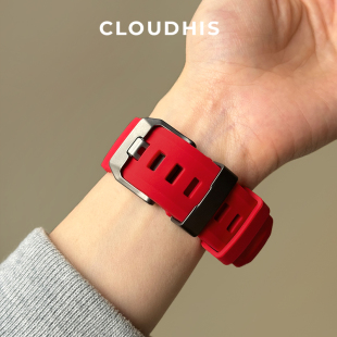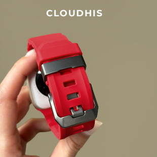 CLOUDHIS适用苹果手表Ultra2表带applewatch10硅胶运动iwatch9野径户外新款 SE钛合金扣高级感透气腕带男女夏