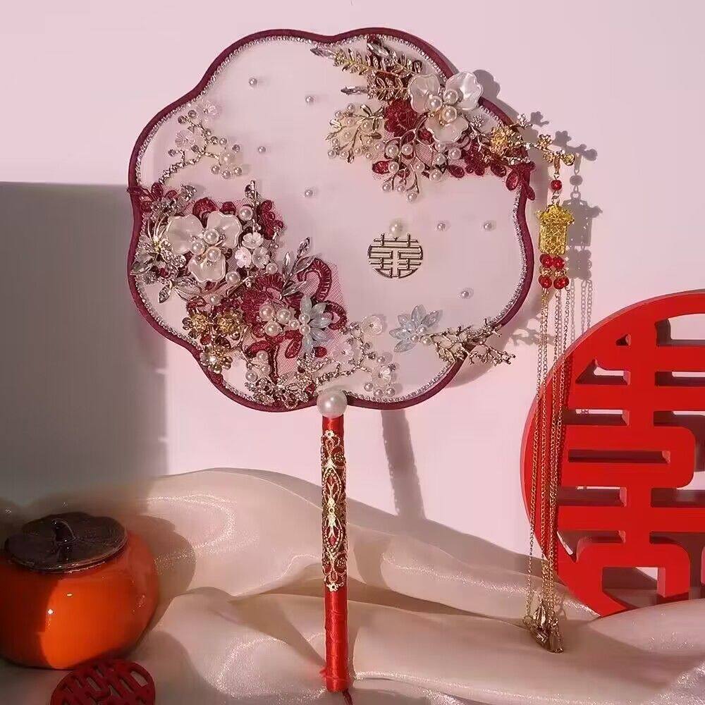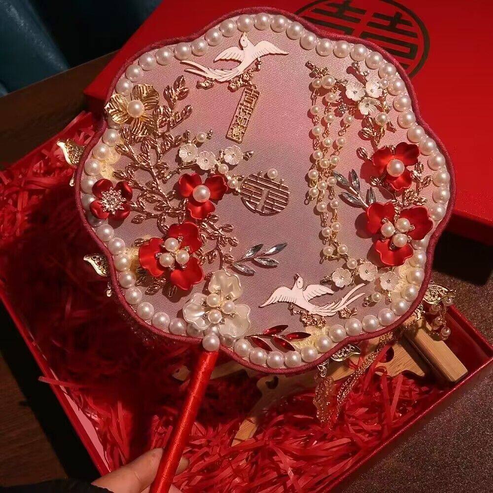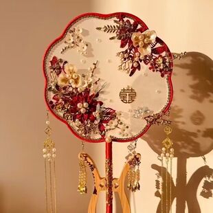 新娘团扇结婚中式 豪华成品婚扇材料包缠花秀禾服闺蜜结婚礼物红色