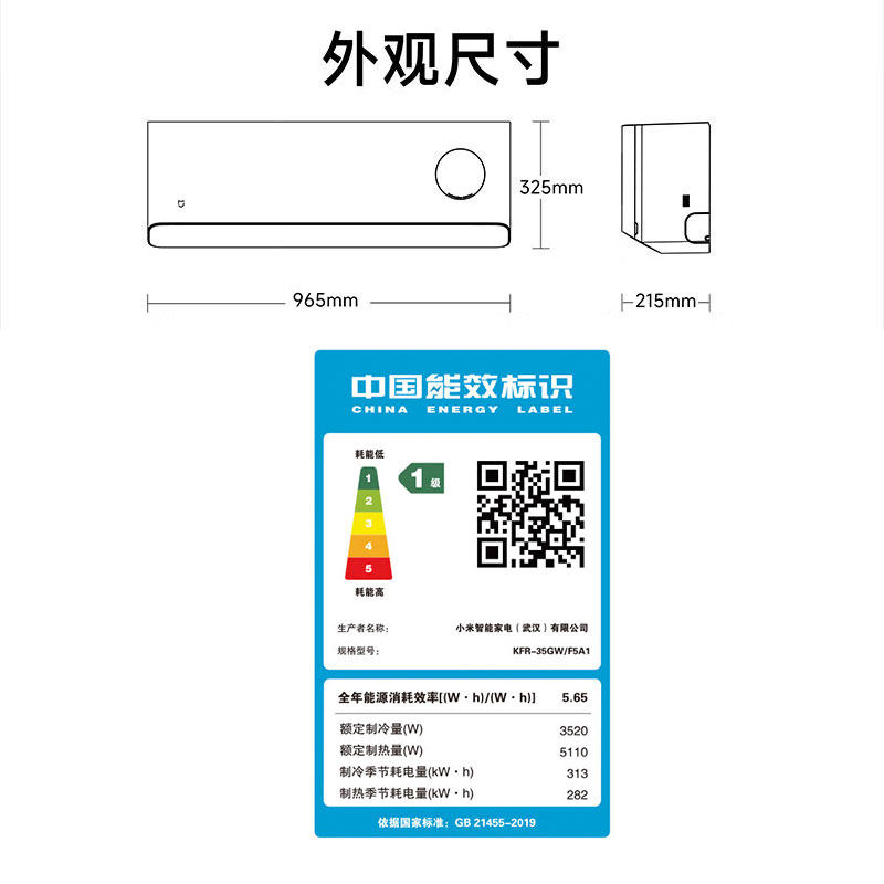 海尔小红花空调净省电官方新一级能效家用1.5匹变频冷暖挂机35E1