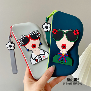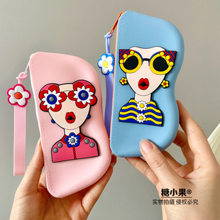 高级感硅胶眼镜袋女旅行便携太阳镜墨镜收纳包可挂防丢可爱眼镜盒