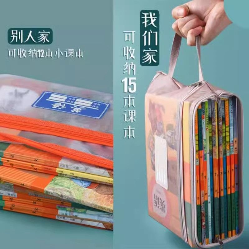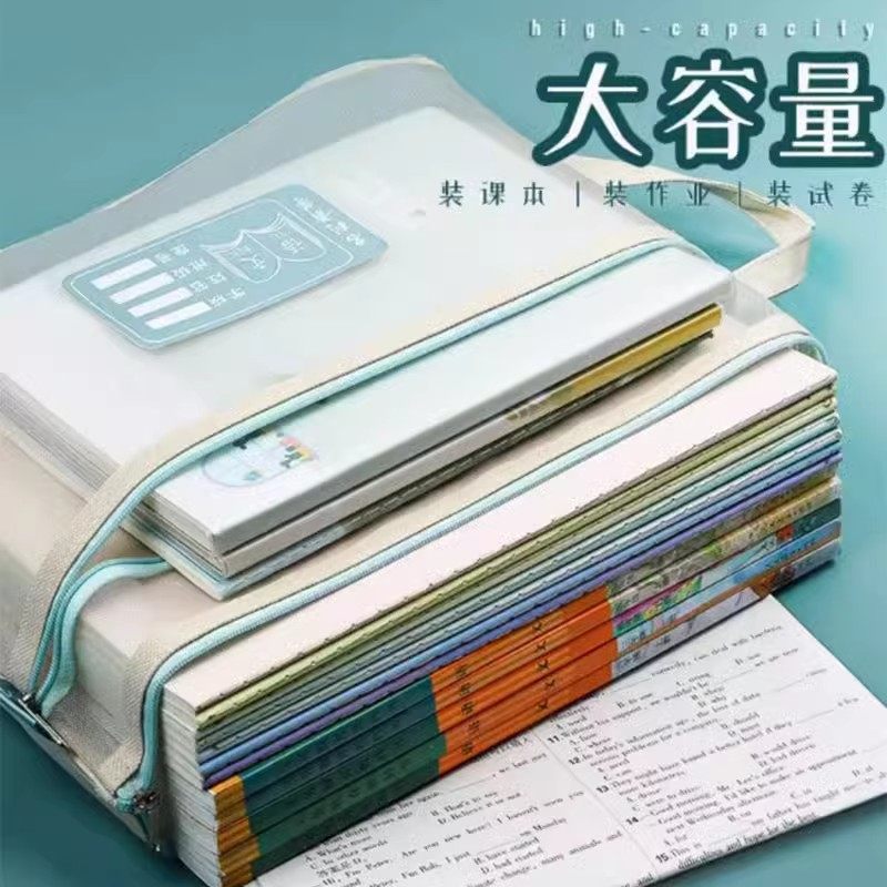 文件袋小学生学科科目分类双层大容量拉链式 网纱作业试卷收纳袋A4资料拉链袋透明拎书袋学习袋课本补习手提袋