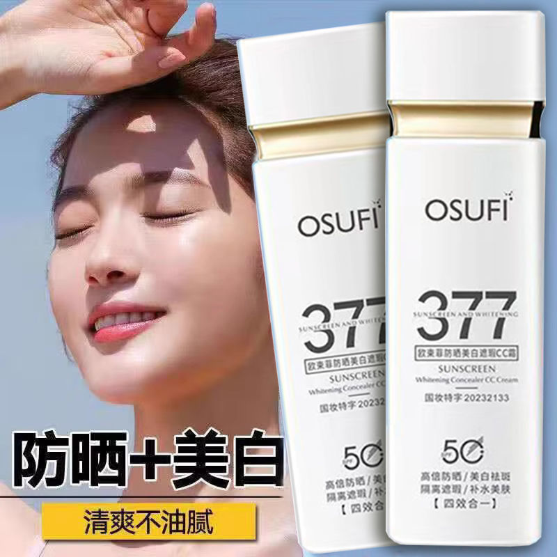 假一赔十377防晒美白遮瑕cc霜隔离三合一防汗提亮肤色学生党