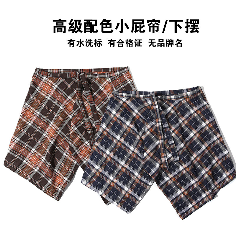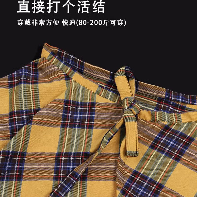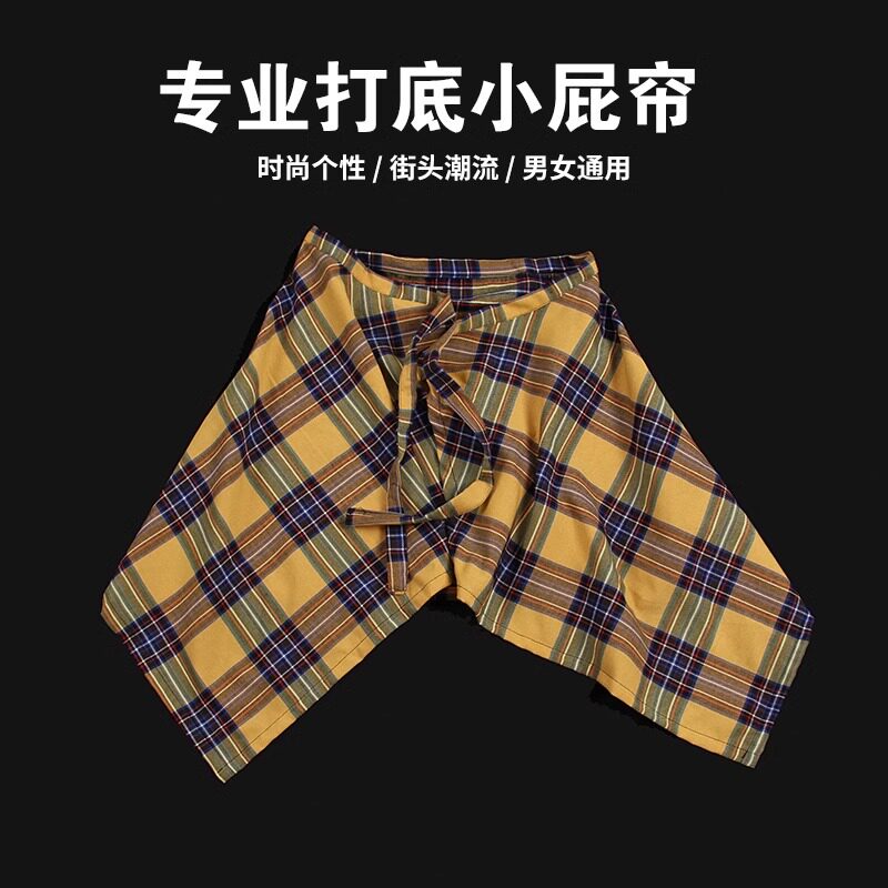 格子屁帘叠穿下摆一片式 系带腰封小摆裙系腰舞蹈外搭遮臀罩裙女