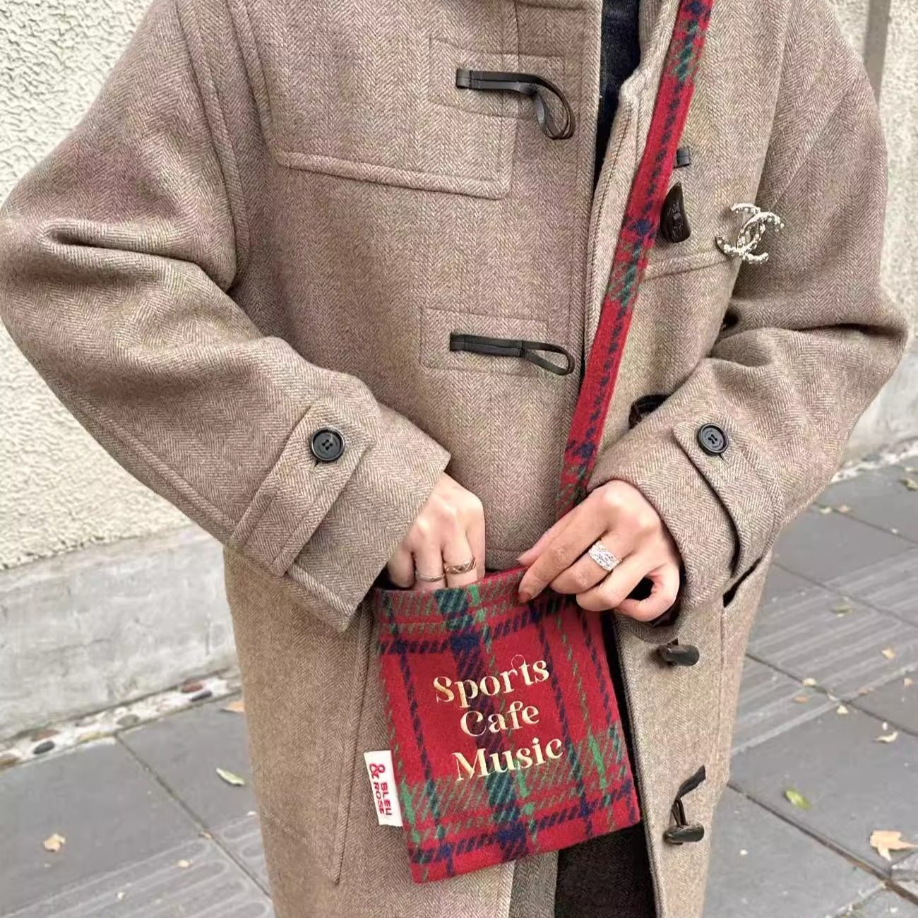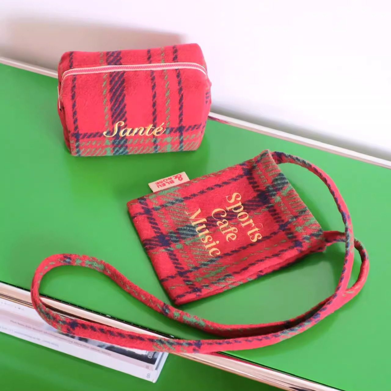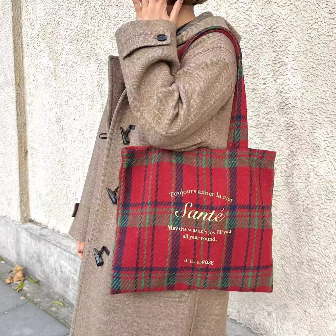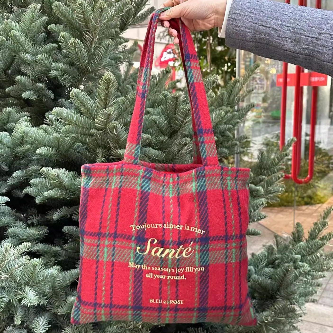 Holiday ROSE 新年红格纹帆布袋大容量收纳旅行包圣诞 BLEU
