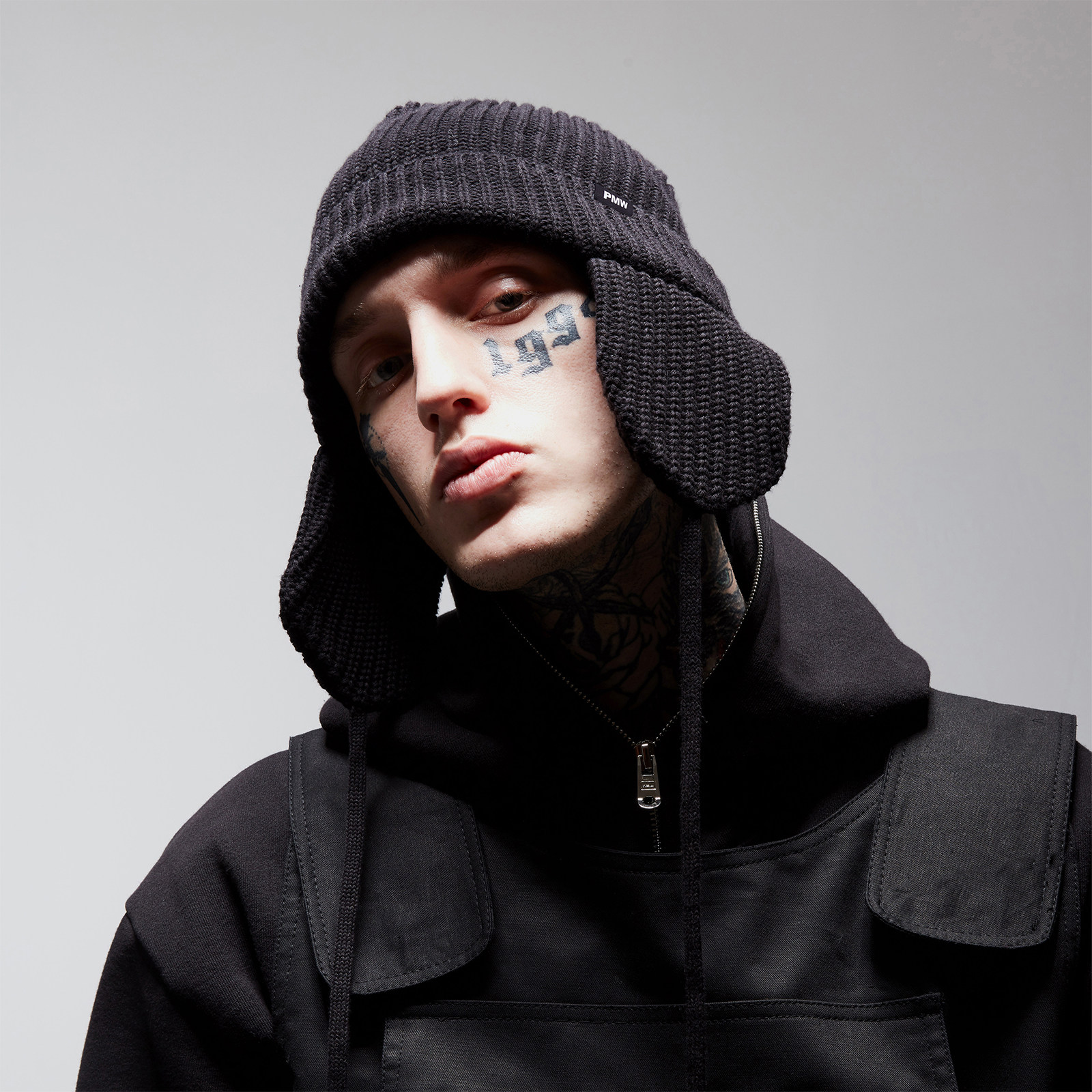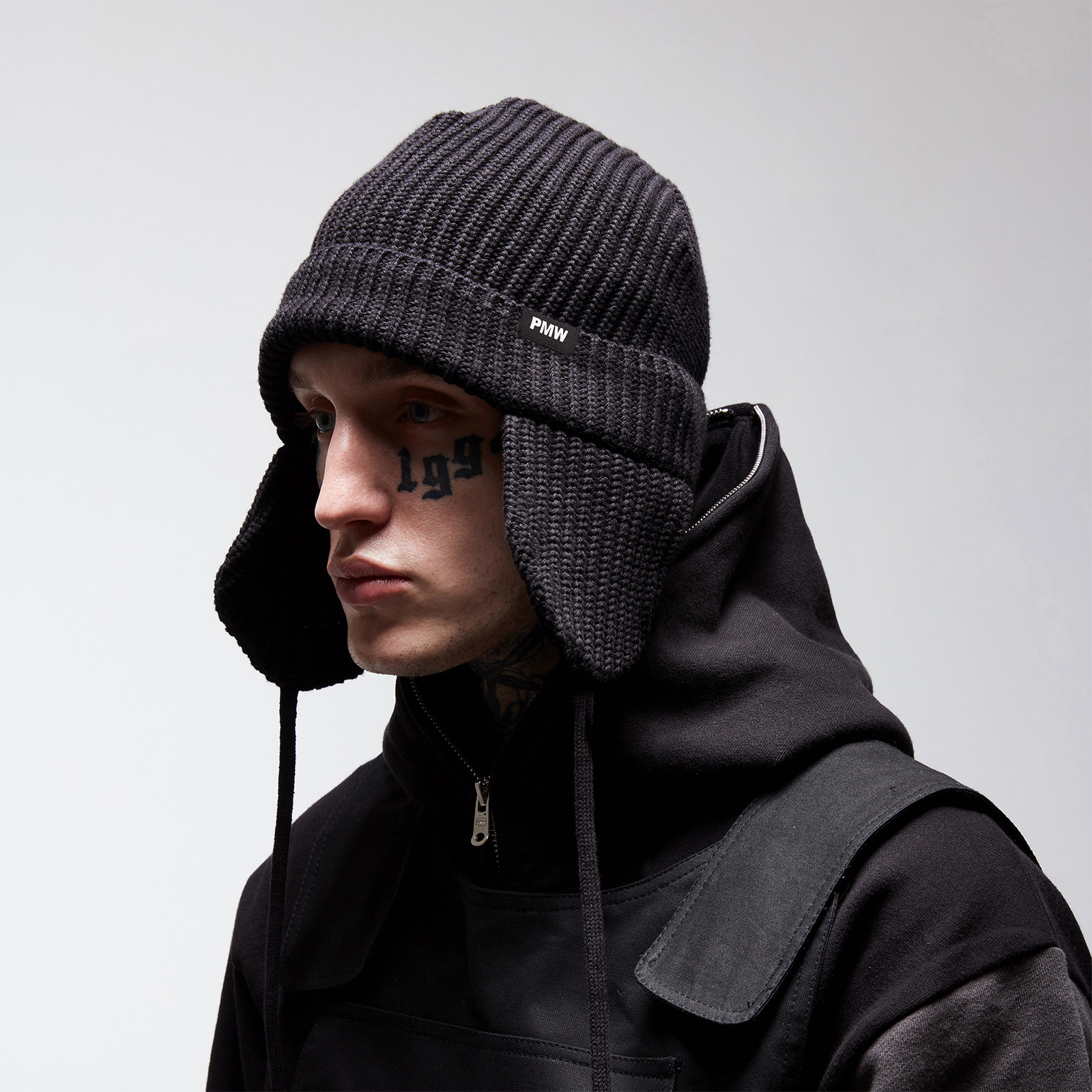 PMW 黑白滑雪雷锋帽纯色针织冷帽通勤户外御寒针织毛线帽