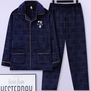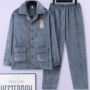 中老年人家居服 加厚加肥大码 男士 珊瑚绒睡衣男秋冬保暖法兰绒男款