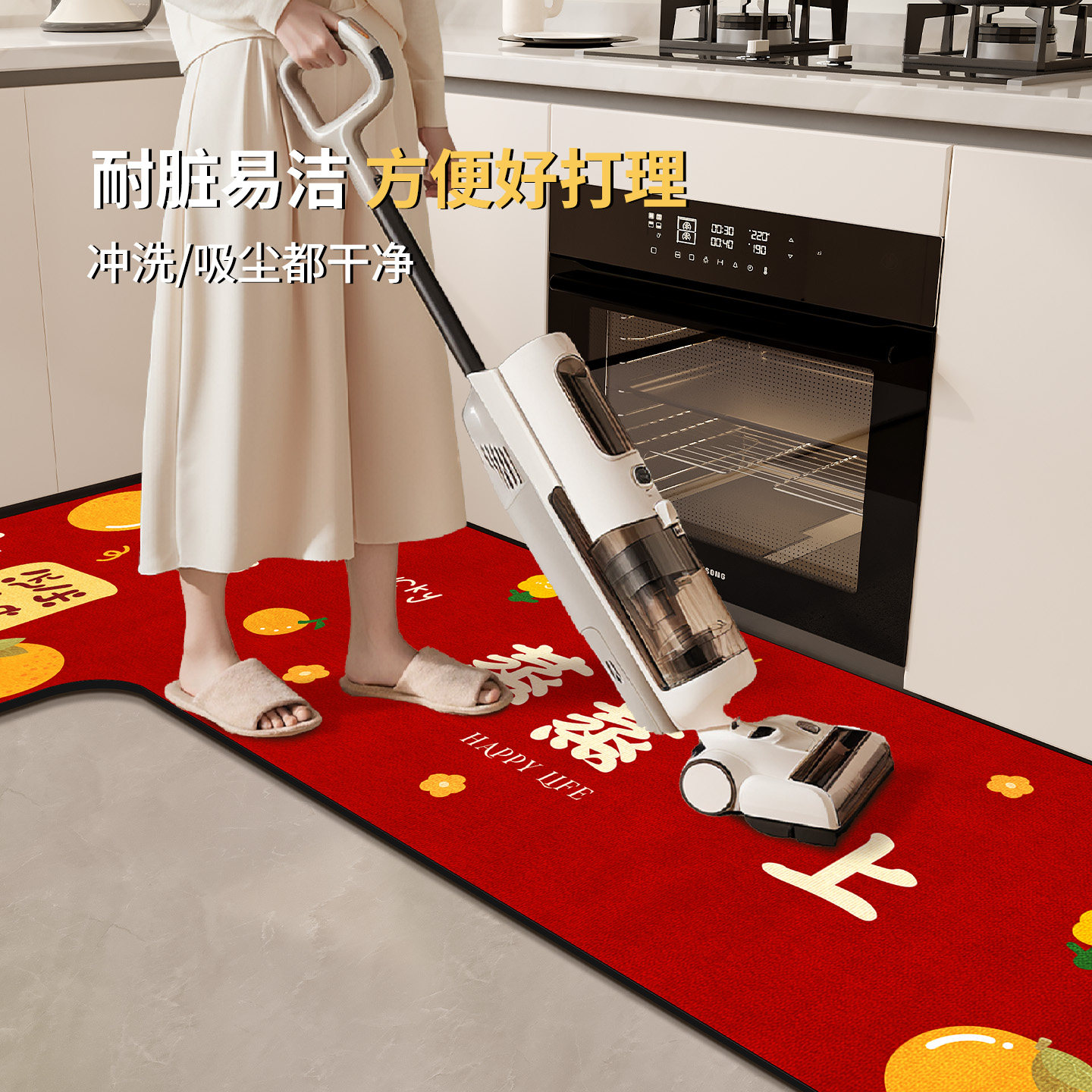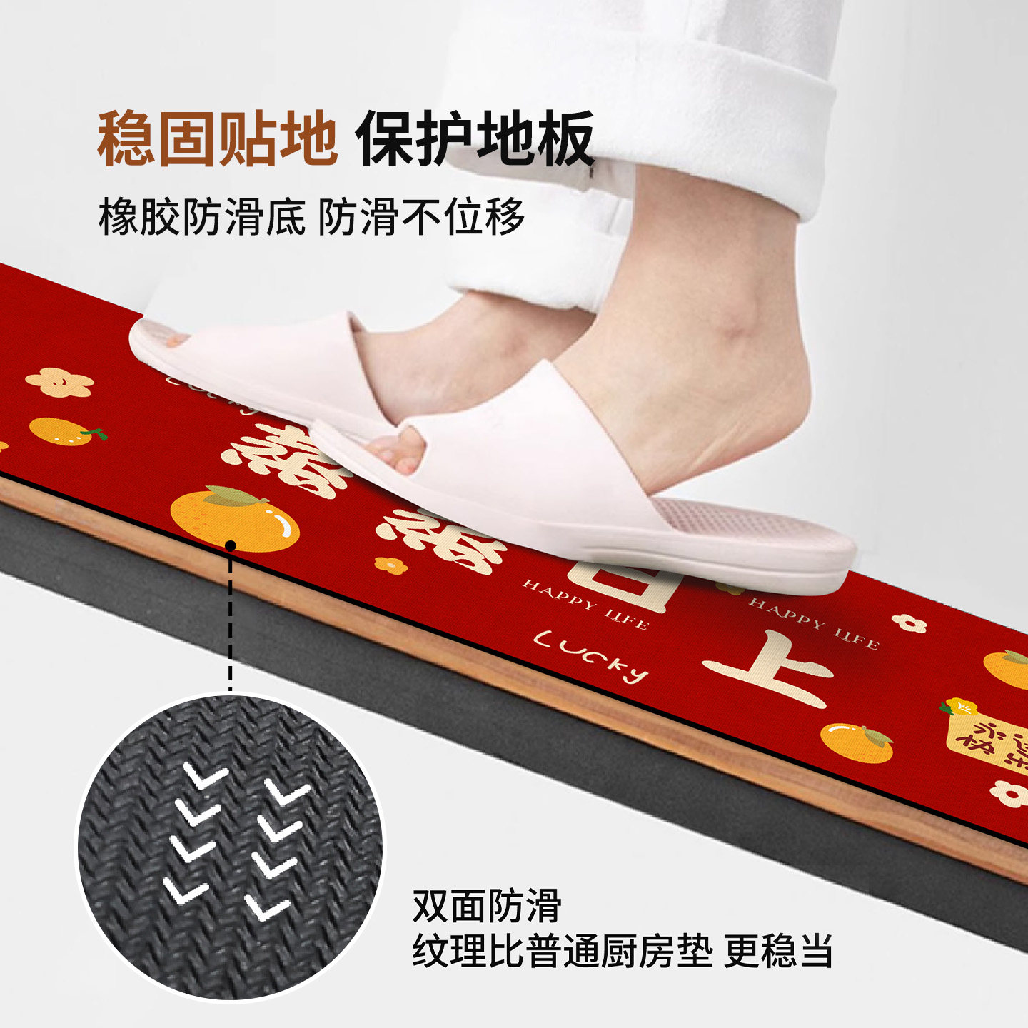 厨房地垫防滑防油可擦免洗防水地毯脚垫转角吸水2025新款 吸油红色