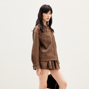 lefame拉飞姆2026春季 饰夹克上衣外套 老钱风钉珠蝴蝶结装