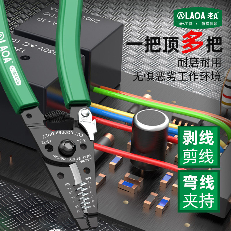 老A 弯柄钳子多功能剥线器剪线钳快速断线钳专业型弯柄剥线钳 新款