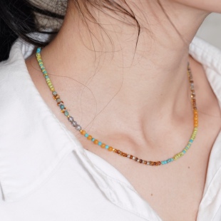 Timee恬觅 天然绿松老黄玉捷克琉璃项链锁骨链毛衣链 春和景明