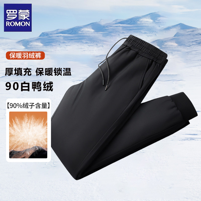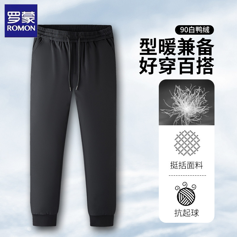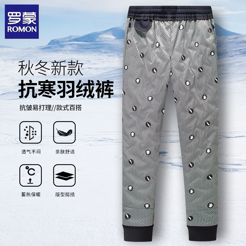 男士 休闲裤 冬季 冬装 商务休闲防风保暖棉裤 罗蒙90白鸭绒加厚羽绒裤