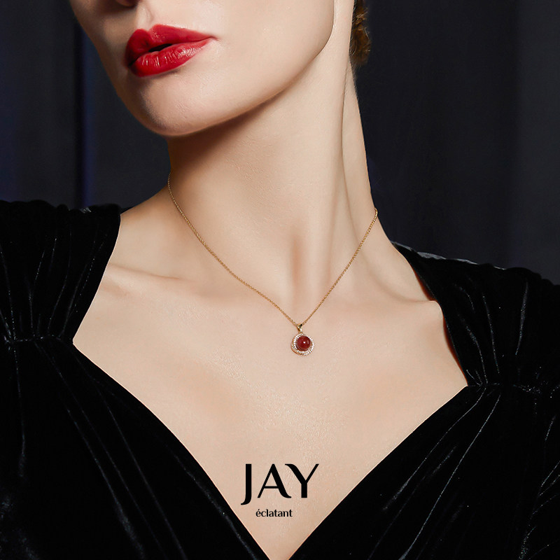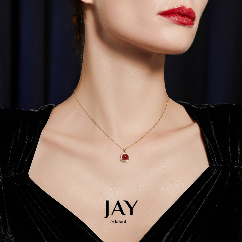 JAY法式 小众锁骨链女轻奢高级感吊坠生日新年礼物 红玛瑙项链新款