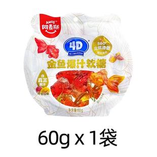 临期A23 Amos阿麦斯4D金鱼锦鲤爆汁水果夹心软糖60g休闲零食喜糖