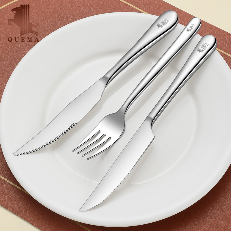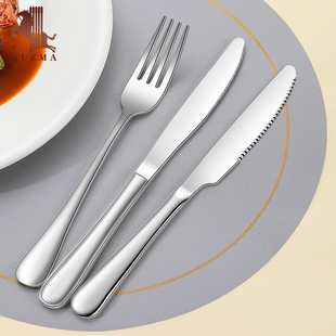 买一送一高档不锈钢牛排刀叉2件套西餐刀叉勺套装 西餐盘子餐垫子