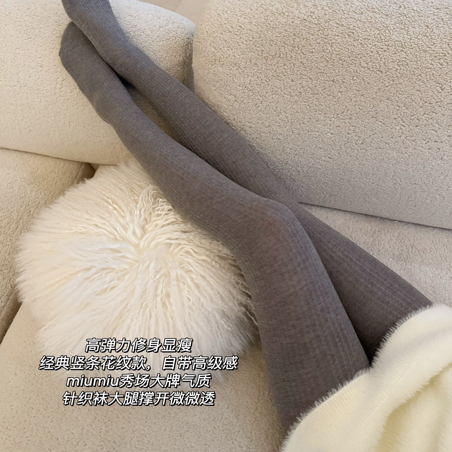 完美记忆打底裤 袜竖条纹 冬女深灰色外穿压力瘦腿加厚黑色加绒连裤