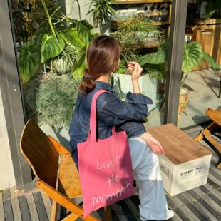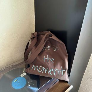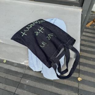 SunsetPark「活在当下」原创英文撞色刺绣彩色牛仔百搭单肩帆布包