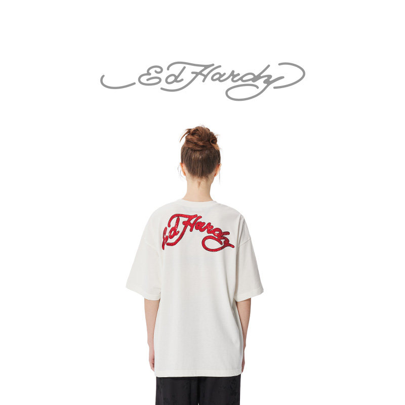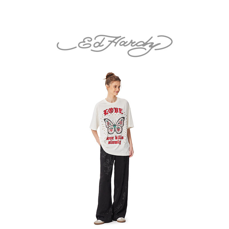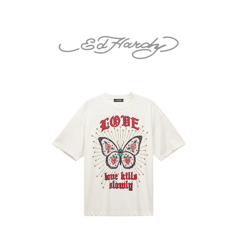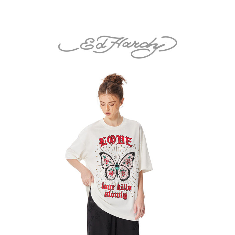 复古烫钻蝴蝶宽松女士短袖 美式 新款 T恤 Hardy埃德哈迪2025春季