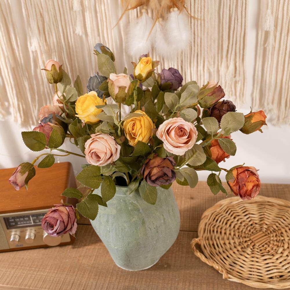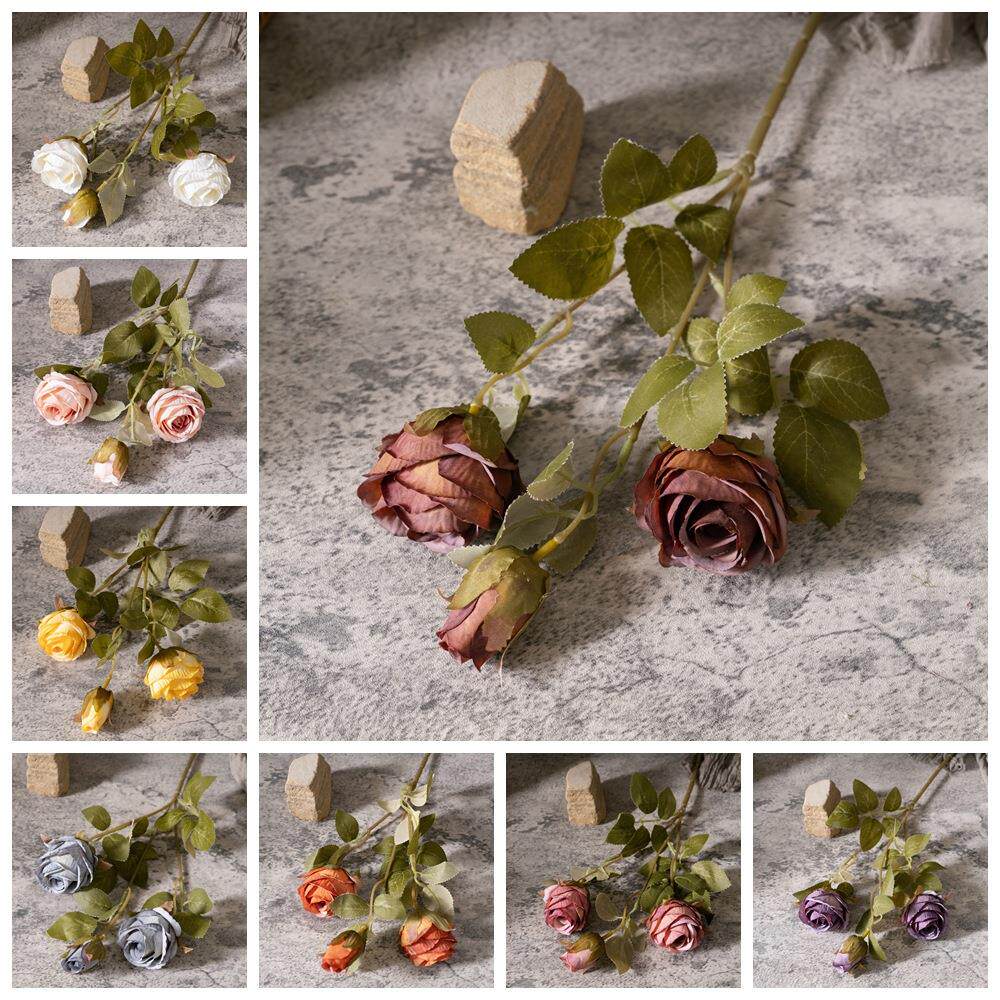 工艺品三头玫瑰花仿真花厂家假花绿植物婚庆装 饰MW66008定制
