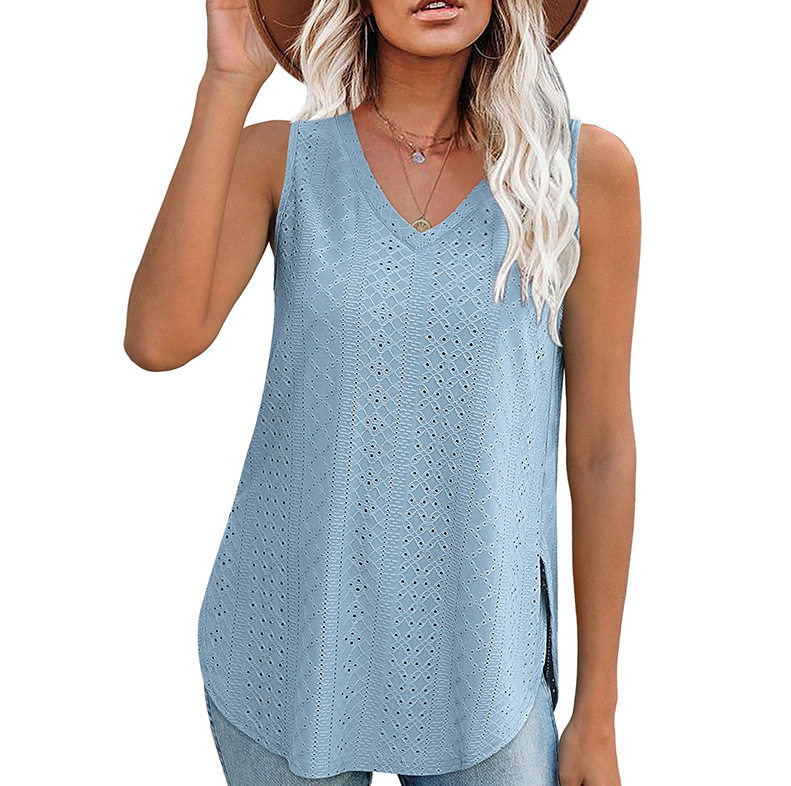 sleeveless hollow jacquard 2025 casual shirt top vest