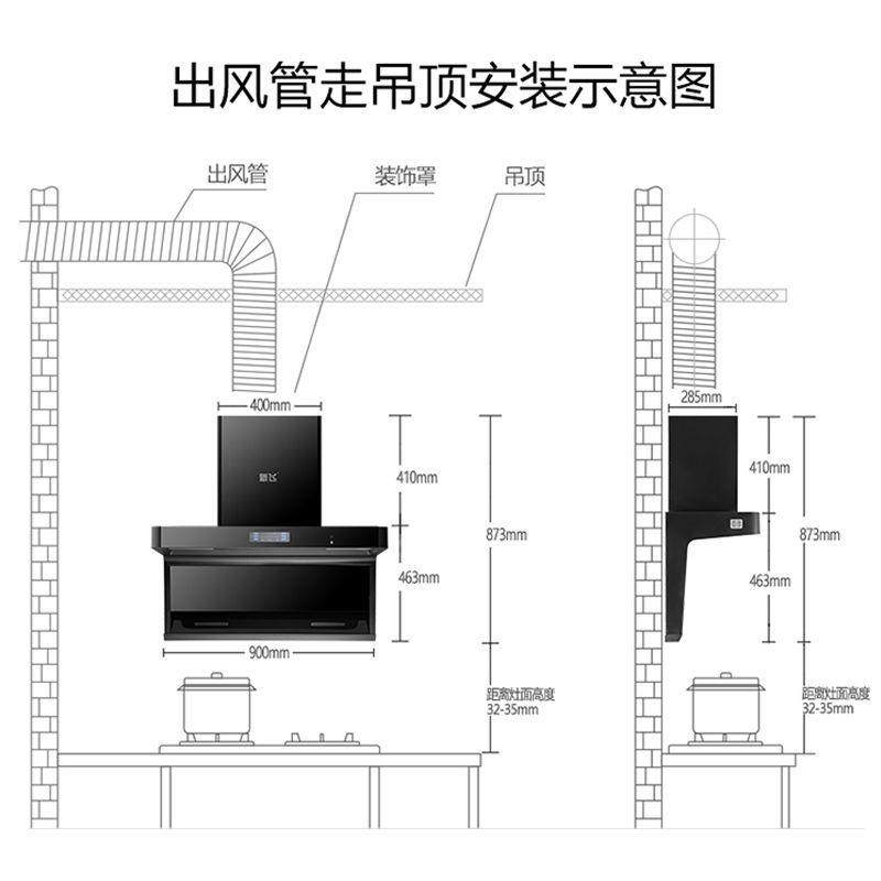 新飞7字型油烟机家用厨房大吸力顶侧双吸式 258 脱排抽油烟机CXW
