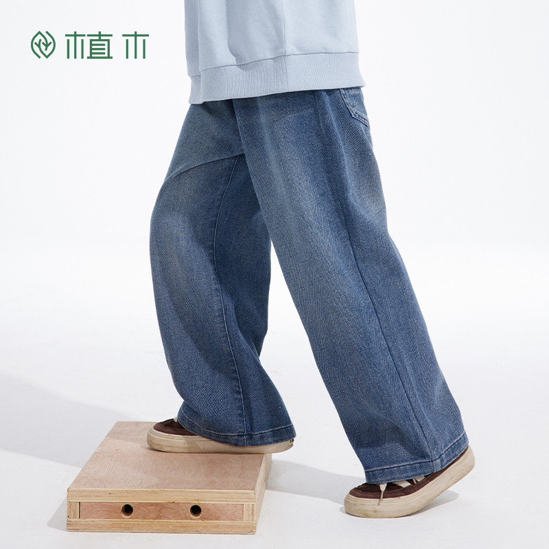 男童裤 儿童裤 子2025春秋新款 牛仔裤 子 中大童棉质阔腿裤 植木童装