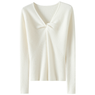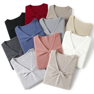 女纯羊绒毛衣针织打底衫 扭结V领100%纯山羊绒衫 秋冬 碾压 气质