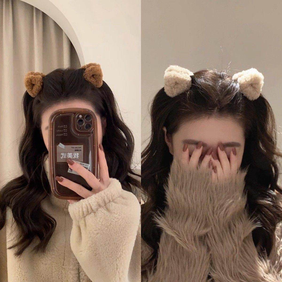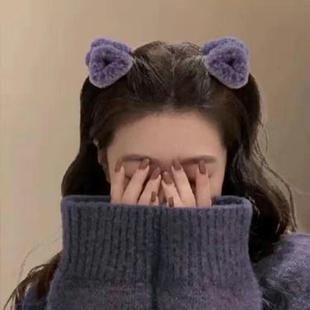 猫耳朵发夹羊羔毛可爱公主头对夹侧边刘海碎发卡子头饰甜美小抓夹