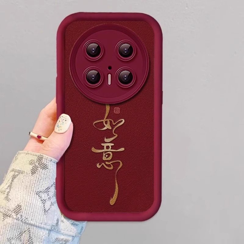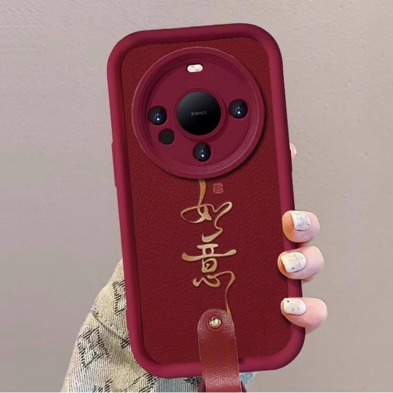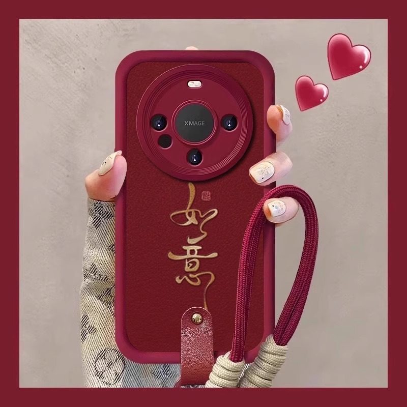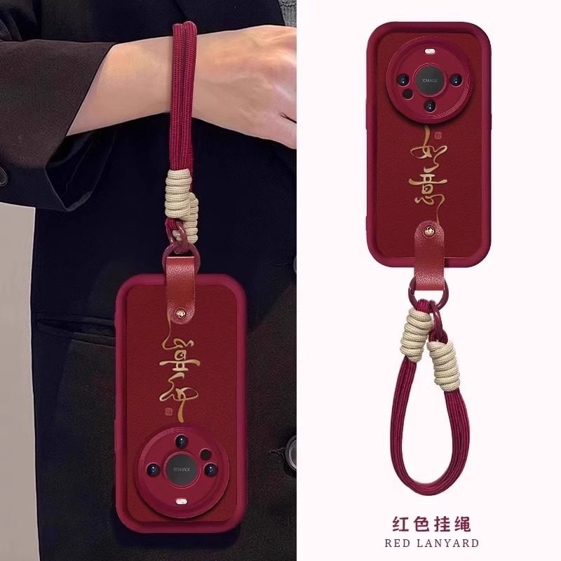 如意文字红色羊巴皮带挂绳适用华为mate80pro手机壳70新年款 mate60保护套50e女高级感秋冬m40全包喜庆por个性