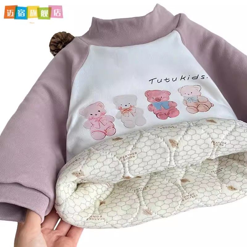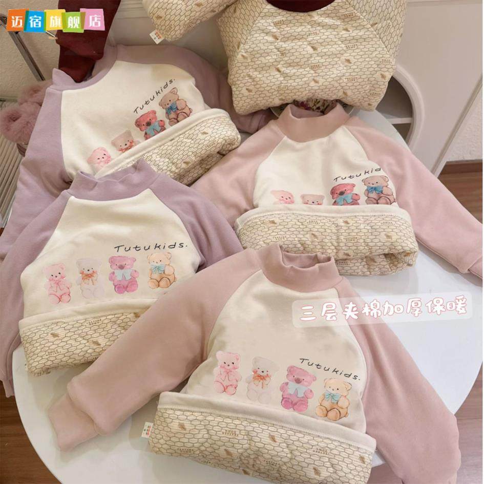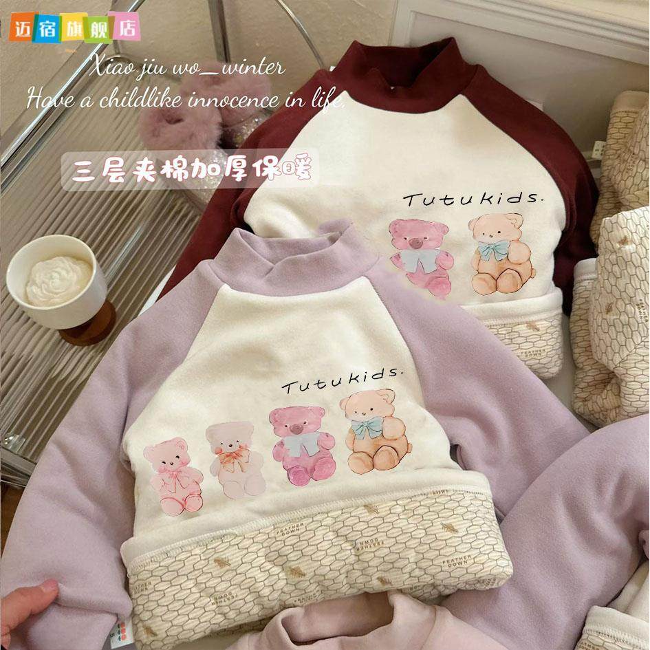 打底衫 580克羊毛蚕丝温变三层夹棉儿童加厚蚕丝棉甜甜小熊长袖