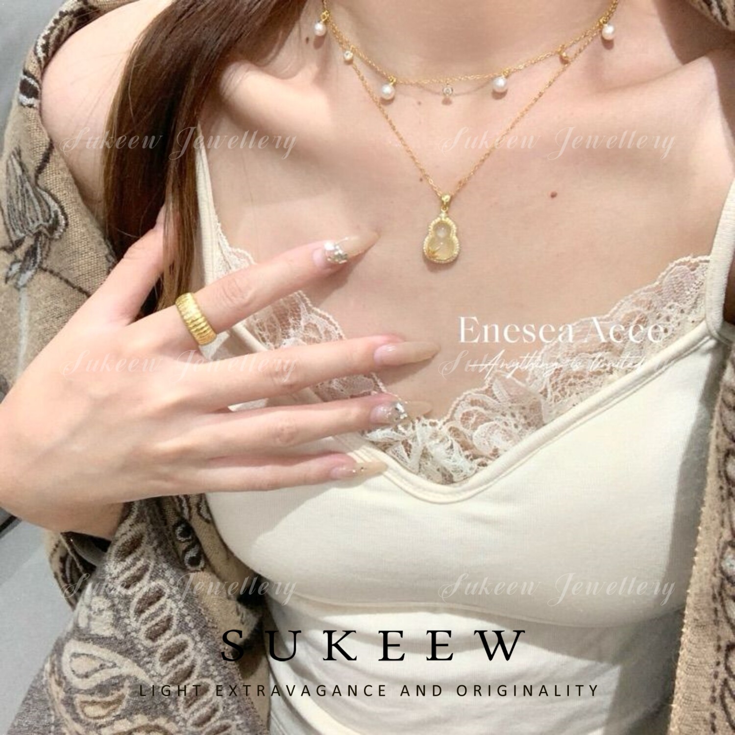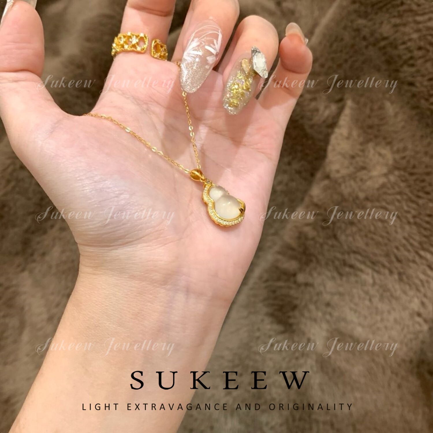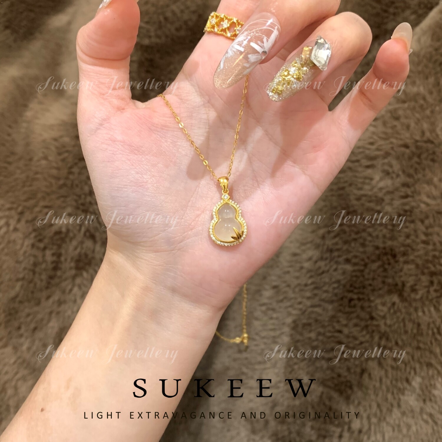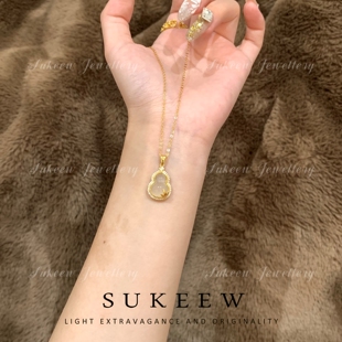 金枝玉叶s925银不掉色白玉髓竹叶葫芦吊坠项链女新品 SUKEEW 酥可