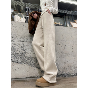 子白色滑雪防风棉裤 加绒毛呢阔腿裤 超厚实羊羔绒裤 2025新款 女冬季