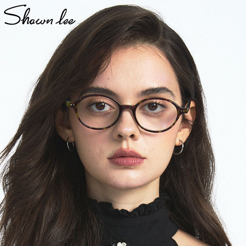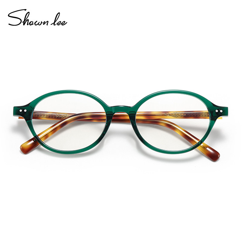 Shawnlee防蓝光眼镜女款 近视可配度数椭圆书呆子复古玳瑁绿色镜框