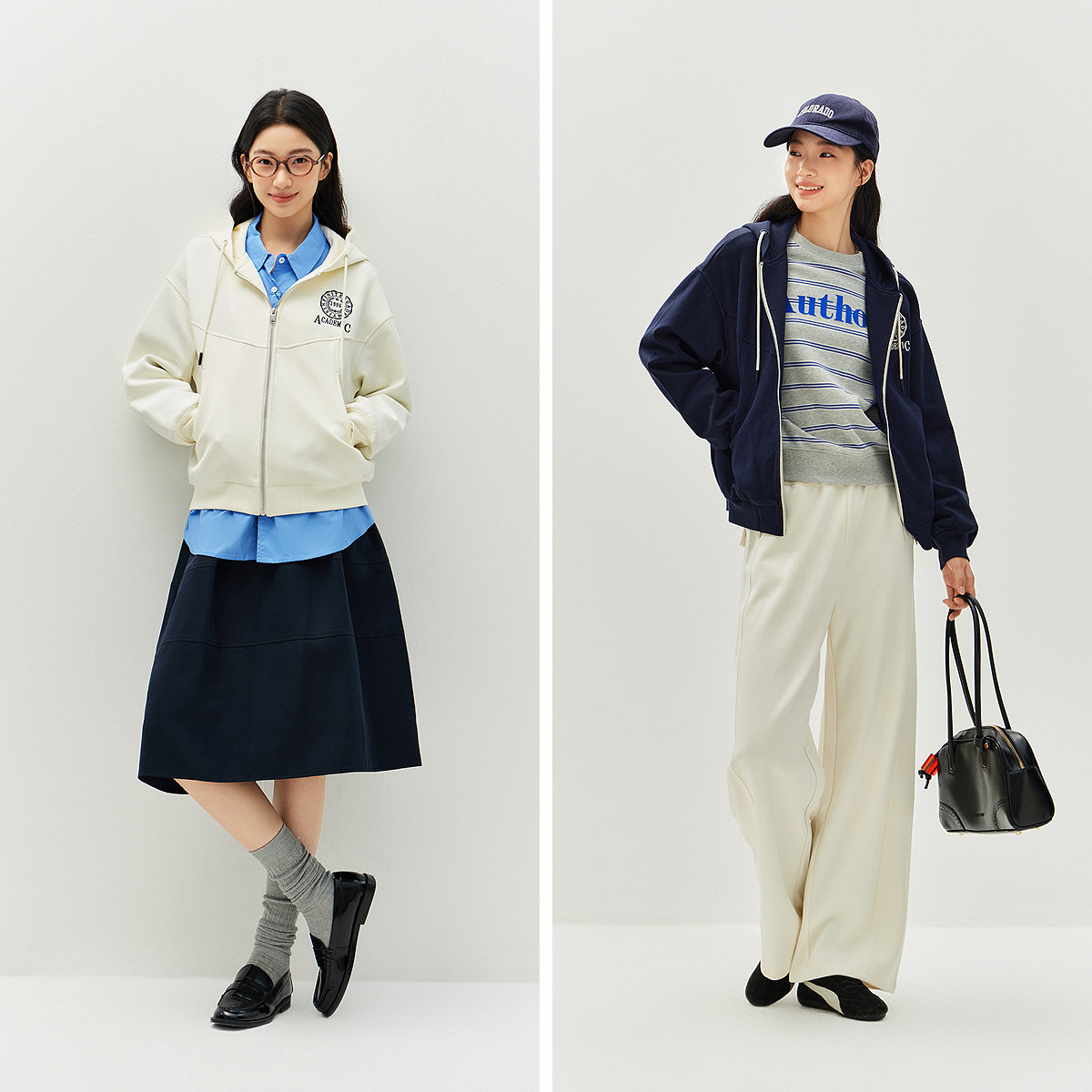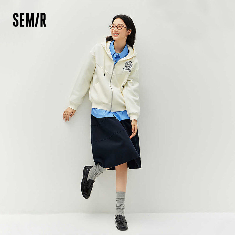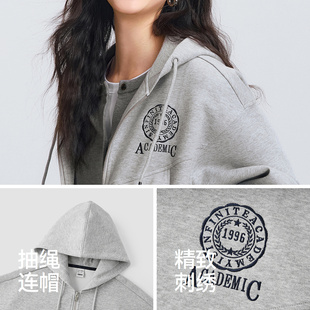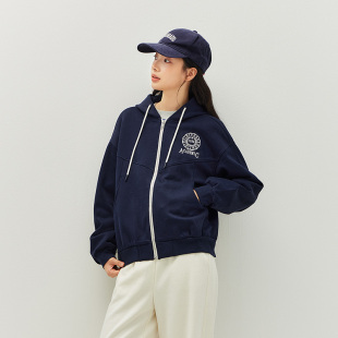 森马外套女春季 连帽字母刺绣宽松落肩质感夹克分割气质学院风上衣