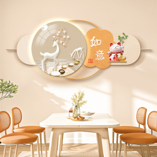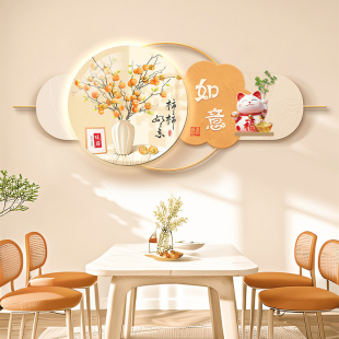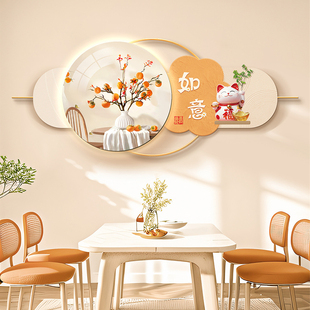 饰挂画新款 餐厅立体壁画新中式 寓意好led氛围灯画铁艺金属墙面装