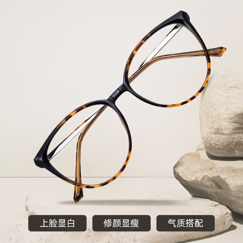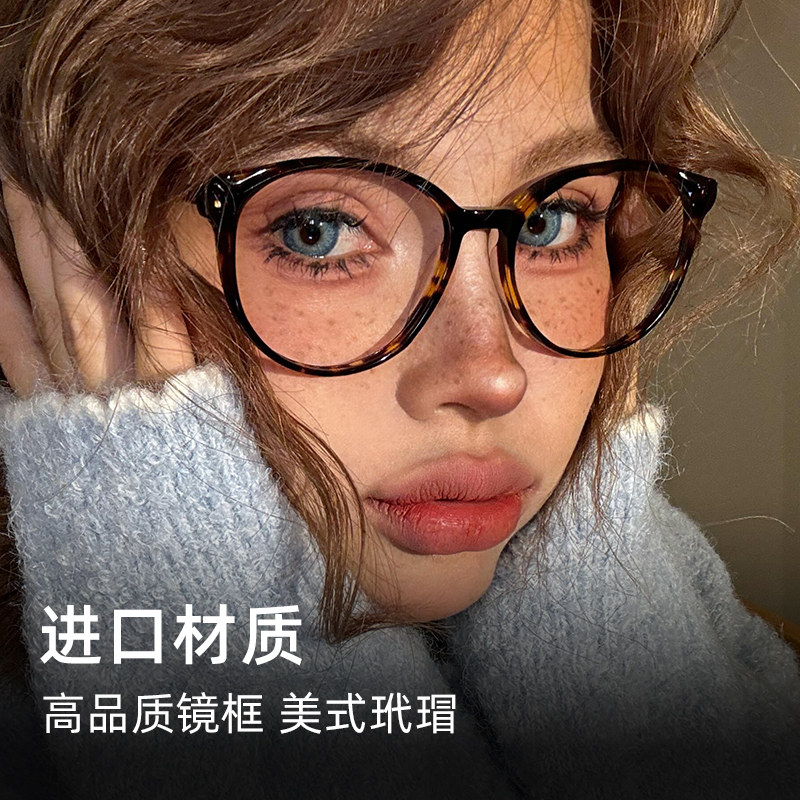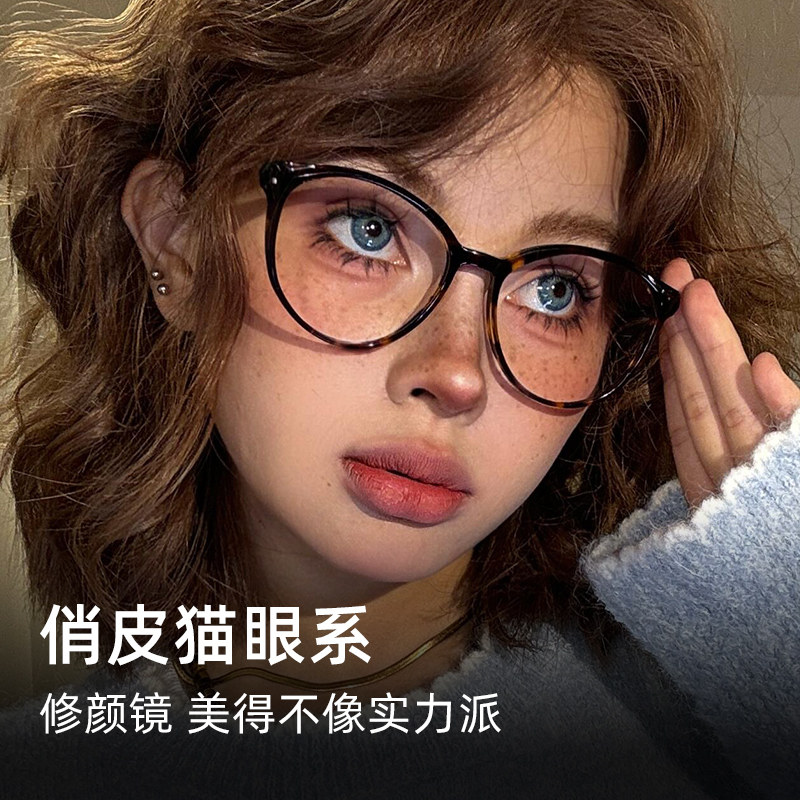 玳瑁圆框猫眼眼镜近视女度数可配防蓝光复古美式 眼睛架超轻TR镜框