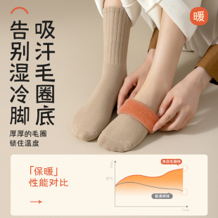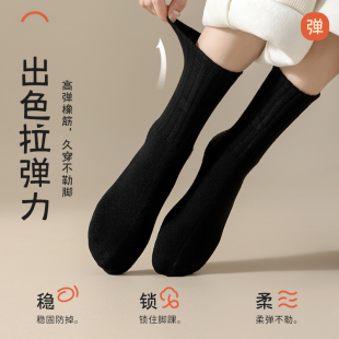 厚袜子女款 中筒袜加绒加厚保暖毛圈黑色长筒袜2026冬天长袜 秋冬季