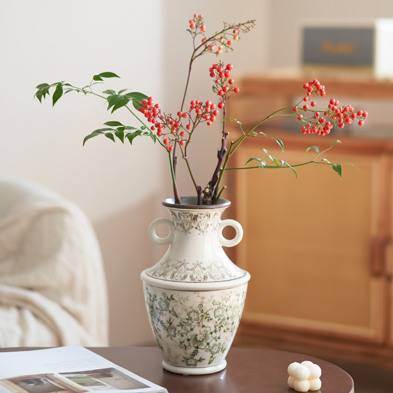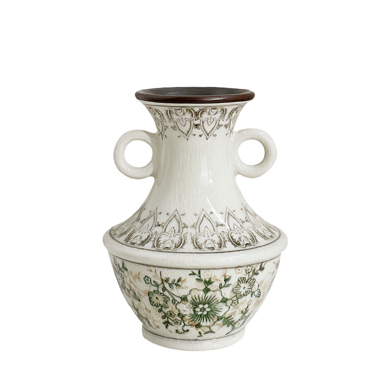 欧式 饰摆件 玫瑰插花花瓶白色简约陶瓷花器客厅餐桌干花鲜花水培装