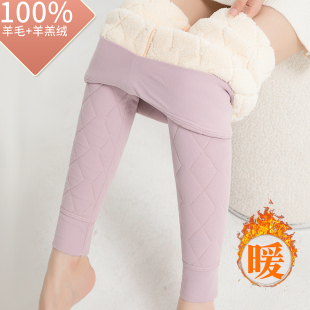 内穿羊毛保暖裤 女秋冬加绒高中生羊羔绒东北哈尔滨漠河防寒打底裤