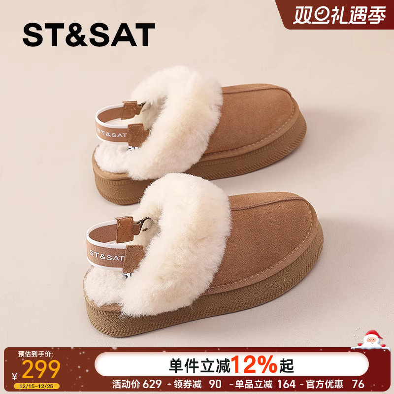 百丽小暖炉2代保暖靴加绒短靴毛毛鞋
