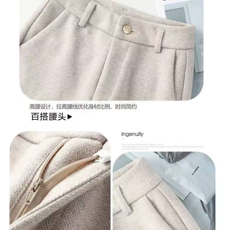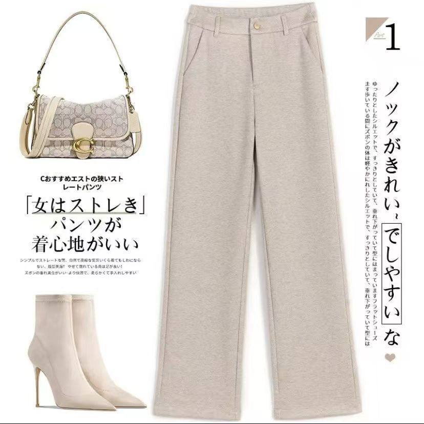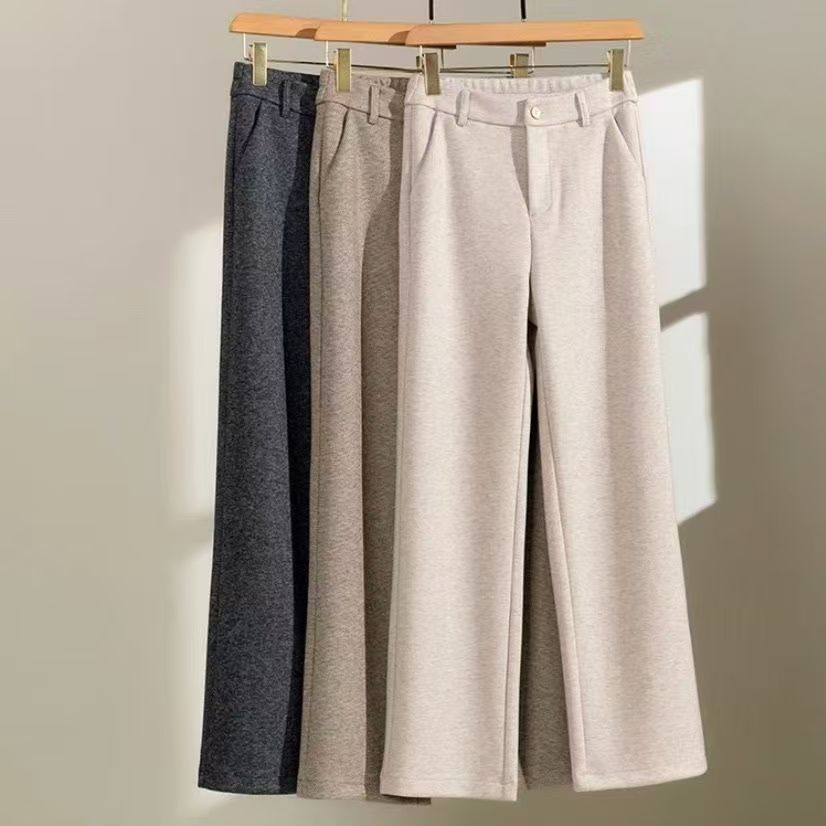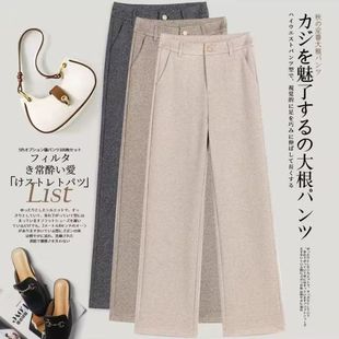 糯米裤 加绒加厚羊绒裤 宽松人字纹窄版 百搭直筒裤 女 女秋冬2025新款