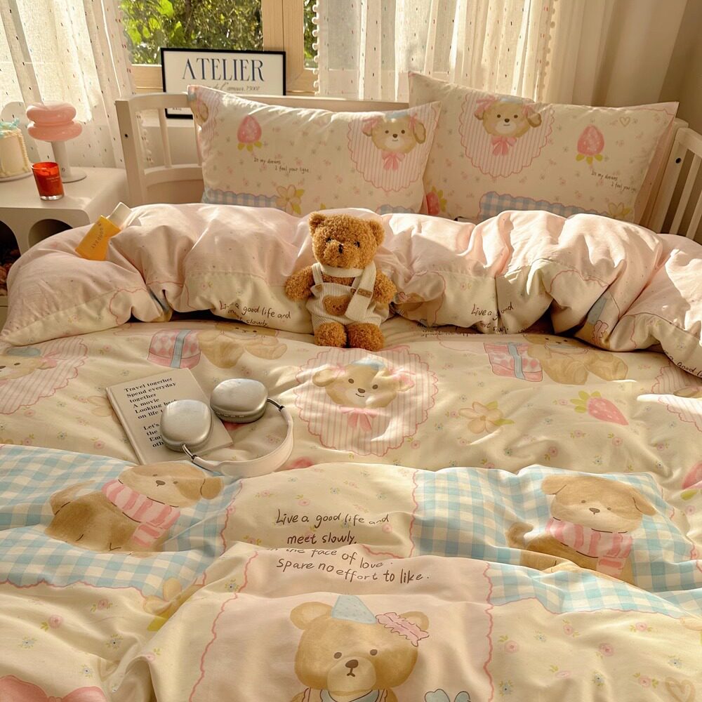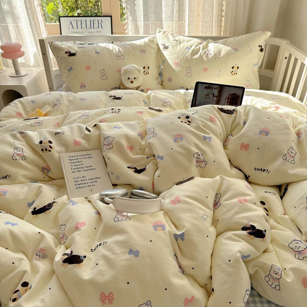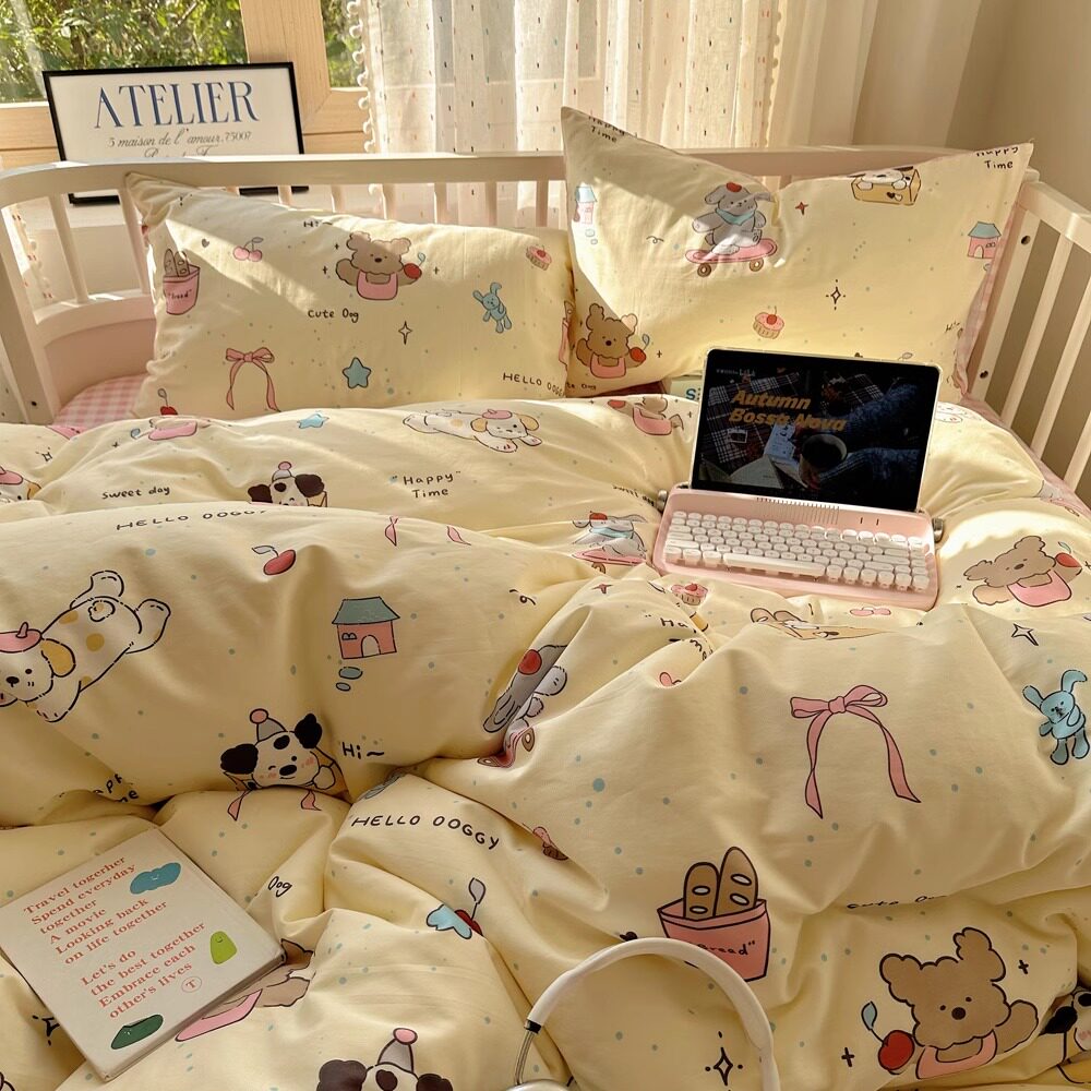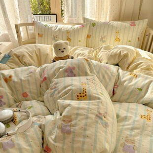 月亮睡了野花小象 卡通全棉卧室四件套少女床单被套宿舍纯棉床品