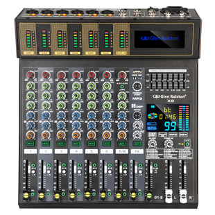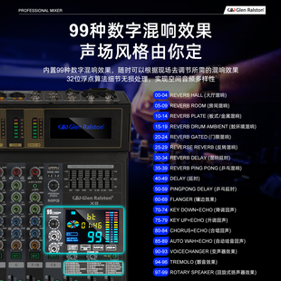 格伦士顿专业8 12路调音台99种DSP效果直播声卡OTG录音K歌音控台