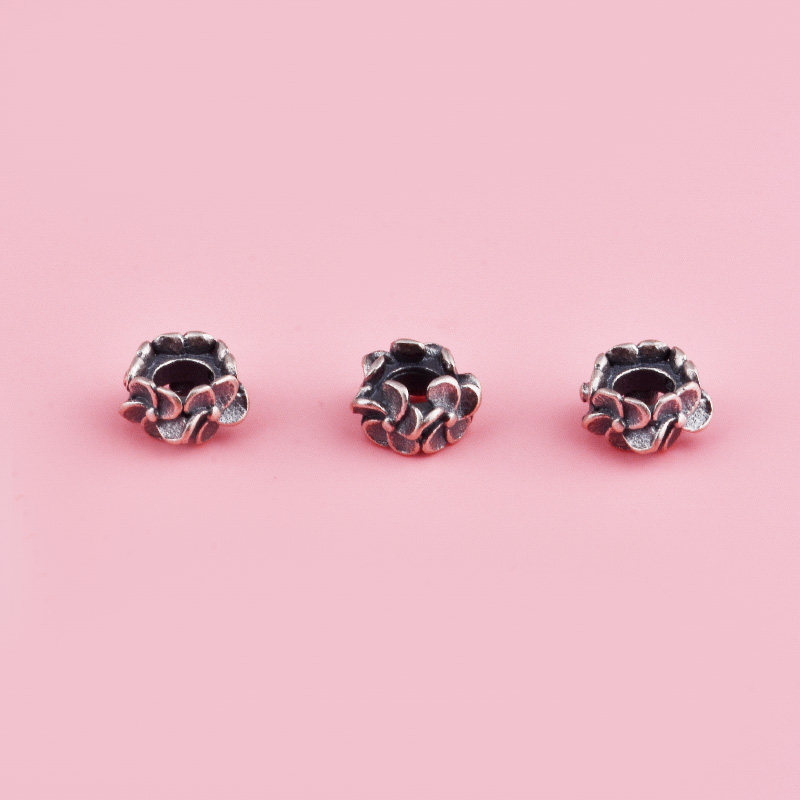 S925纯银泰银5mm花朵隔珠散珠配件diy手工编绳手链串珠水晶银饰